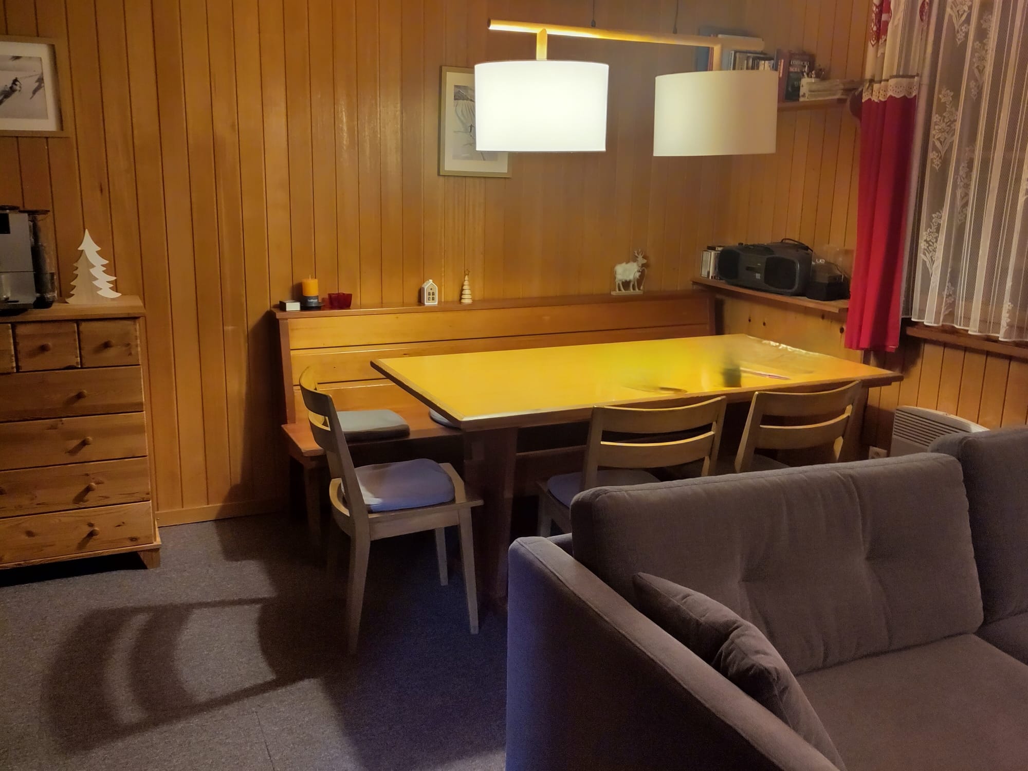 - 1 grosser Raum mit Wohnzimmer (inkl. TV), Küche und Esszimmer
